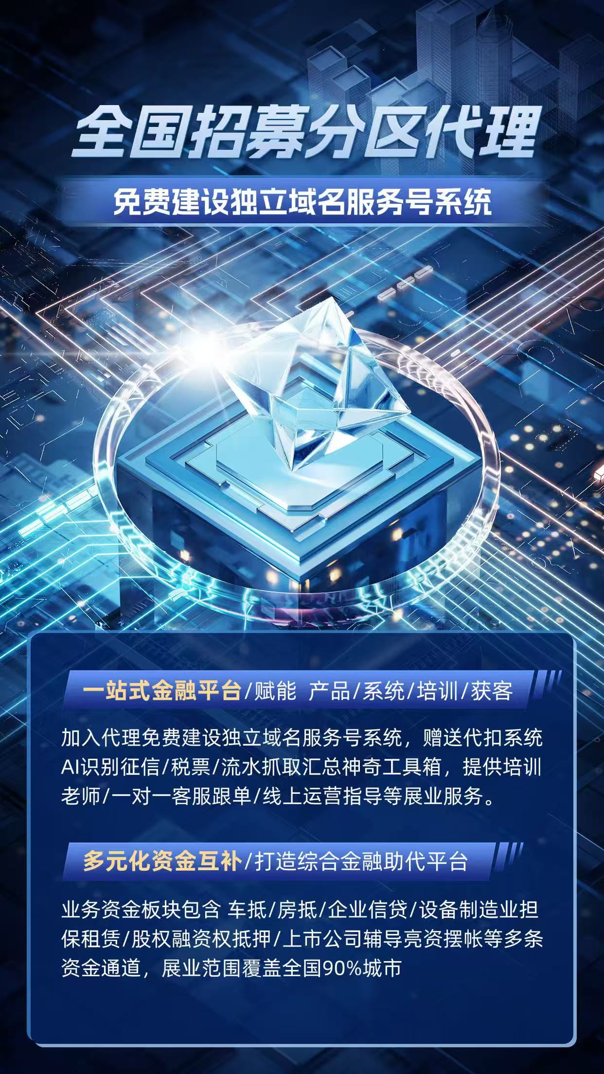 全国招分区代理 全国展业 车抵/车分期(房抵二三押+企业信贷)一站式解决产品获客、系统、产品匹配 利息0.6%-1.14% 高F17%,一单一结,不兜底。可消化新能源、营转非、事故车、网约车、商用车、豪车等多种车型。刚过户、花嘿户、事故车、按揭车均可做
