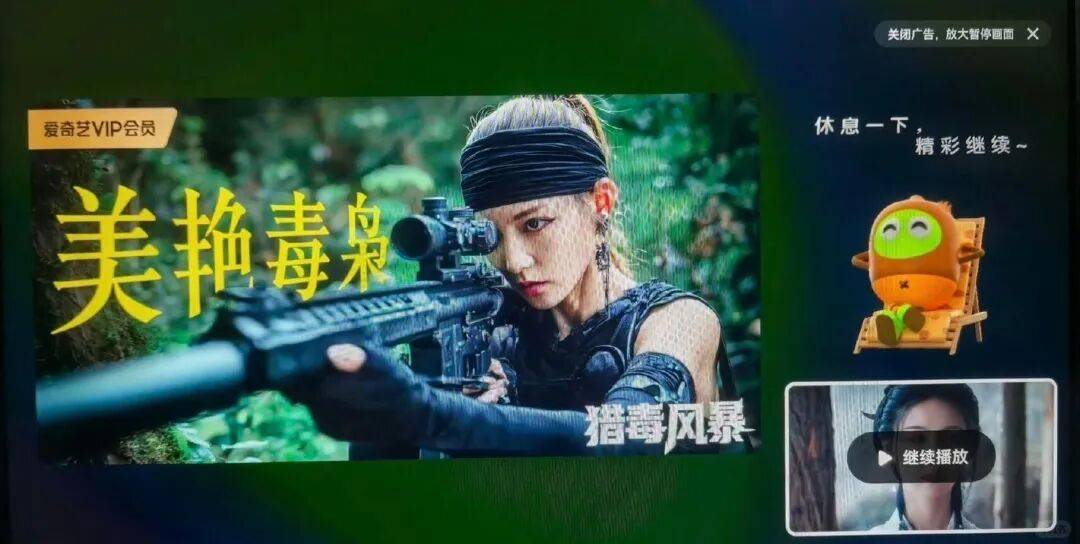 “打开正规平台追剧,暂停后突然弹出这种画面,第一反应以为点进了非法网站。”网友吐槽,广告画面冲击力很强。
